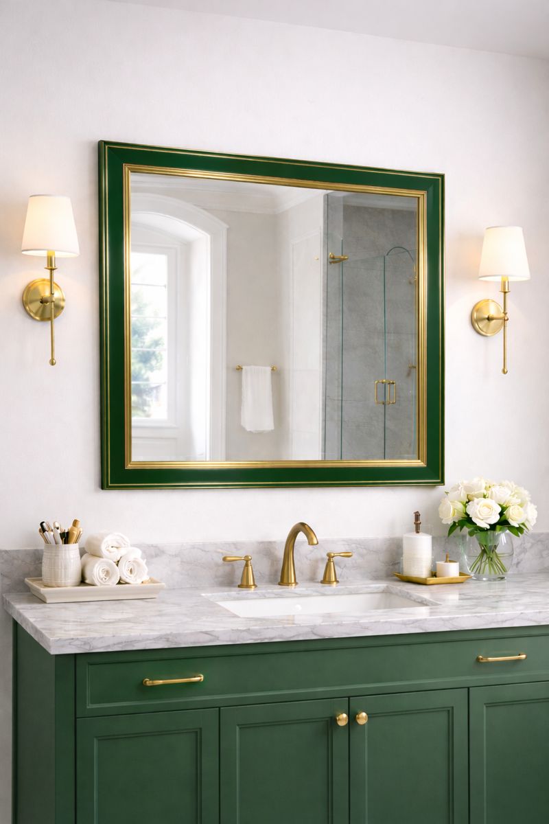 Lustro w rzeźbionej ramie pozłacanej złotem płatkowym sprawdzi się dla osób lubiących postawić na złote, ozdobne akcenty we wnętrzach. To świetnie rozwiązanie do bogato klasycznych i ponadczasowych wnętrz, ale doskonale pasować będzie również do stylu glamour.
