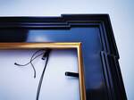 Rama jest pozłacana na wodę, co pozwala uzyskać głęboki, aksamitny połysk oraz subtelne przejścia tonalne. Klient może wybrać rodzaj złota-płatkowego oraz kolor glinki, aby dostosować ostateczny wygląd oprawy do charakteru obrazu.