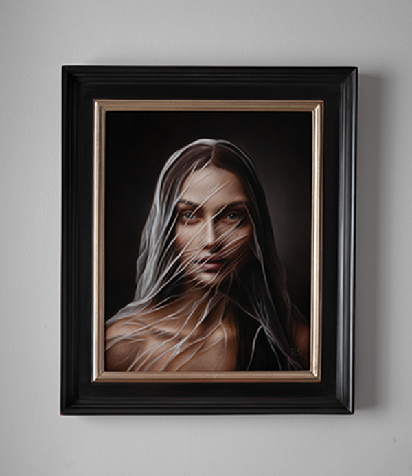 Na załączonym zdjęciu widoczny jest obraz Rafała Stanula „Laura” (35 × 28 cm), oprawiony w elegancką ramę wykonaną na zamówienie. Do tego projektu wykorzystaliśmy ramę dostępną w naszym sklepie: Rama do obrazu nr 272.