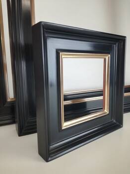 Każda rama powstaje w mojej pracowni od początku do końca. Listwy są docinane i łączone na tradycyjne wpusty, co zapewnia solidność i estetyczny wygląd narożników. Kolejne etapy to ręczne gruntowanie, malowanie kilkoma warstwami i wykańczanie powierzchni.